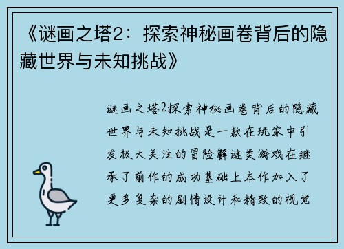 《谜画之塔2:探索神秘画卷背后的隐藏世界与未知挑战》
