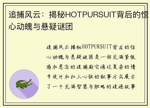 追捕风云:揭秘HOTPURSUIT背后的惊心动魄与悬疑谜团